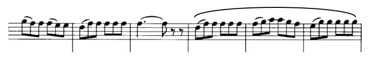 Häufig sind keine Kennzeichen gesetzt und man muss/kann seine Phrasierung selbst setzen. Ein Anhalt mag hier die Hinführung eines Themas zum höchsten Ton sein, ab dem sich das Thema wieder entspannt (und damit leiser wird). Z.B. könnte man im folgenden Beispiel (aus „Im Wienerwald von Johann Hayden) eine viertaktige Phrasierung machen, mit dem Höhepunkt beim A der ersten Stimme.